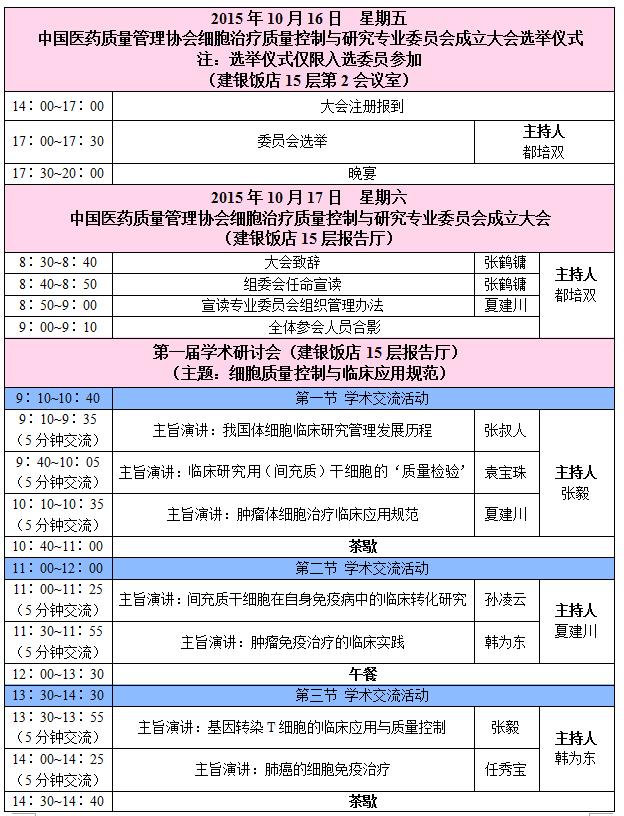 由中國醫藥質量管理協會細胞治療質量控制與研究專業委員會(籌)主辦、中山大學附屬腫瘤醫院、鄭州大學一附院、拜西歐斯(北京)生物技術有限公司聯合承辦的“中國醫藥質量管理協會細胞治療質量控制與研究專業委員會成立大會暨第一屆學術研討會”將于2015年10月16-17日在北京召開,成立大會將選舉產生第一屆委員代表和常務委員會委員,研討會將圍繞“細胞質量控制與臨床應用規范”主題開展學術交流,屆時將邀請國內外細胞治療領域(包括干細胞和免疫細胞)的專家學者就研討會主題作學術報告。本專業委員會是細胞治療質量控制與研究領域學術交流的大平臺,將定期舉辦各種規模的學術交流會議,通過學術會議,以期達成行業共識,推動細胞制劑質量控制標準體系的建立和相關政策出臺,使我國的細胞治療行業在規范化的基礎上健康有序發展。