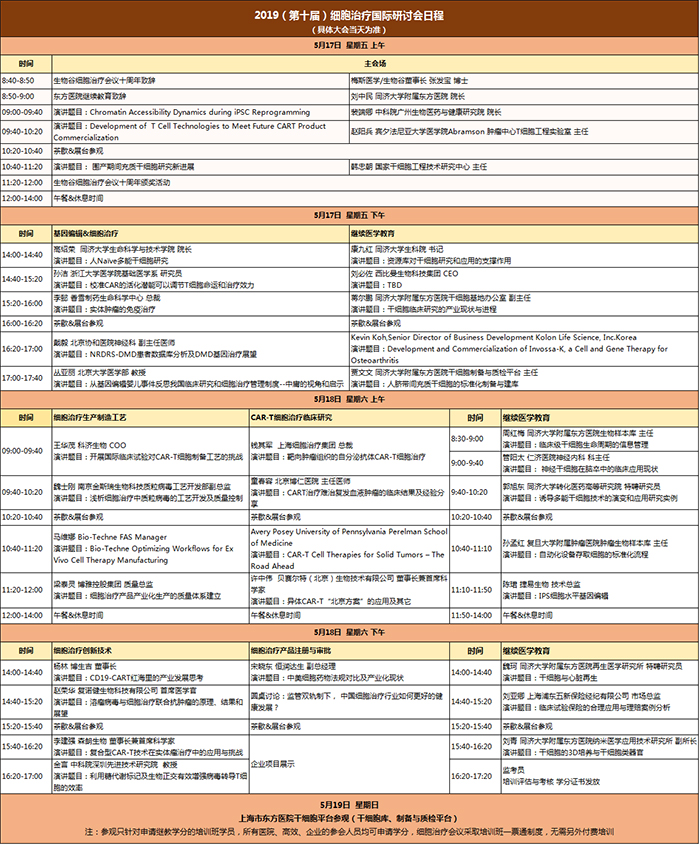 本次會議的主題是“加快中國細胞治療產品的上市”,設置主會場、基因編輯與細胞治療專場、CAR-T與干細胞臨床研究專場、細胞治療生產制造工藝專場和細胞治療產品注冊與臨床申報專場。