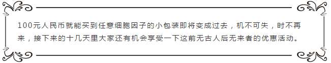 如何參加特惠活動(dòng),哈哈,我再叨叨最后一遍,第一步購(gòu)買(mǎi)包裝任意因子第二步備注我們的活動(dòng)單號(hào)AC—2017即可享受100元就能買(mǎi)到SIZE A的細(xì)胞因子,只需要100元。