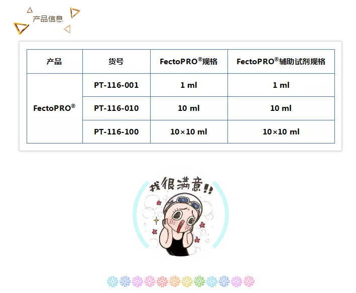 FectoPRO?采用嚴格管控的生產(chǎn)流程進行生產(chǎn)和配置,確保各實驗結(jié)果的高度可重復性。此外,為了符合現(xiàn)行的監(jiān)管準則,F(xiàn)ectoPRO?還采用了先進的質(zhì)控流程,包括確保批次間的蛋白質(zhì)生產(chǎn)率有絕佳一致性的質(zhì)量指標。