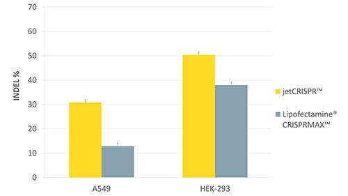 圖4: 在HEK-293細(xì)胞中,使用jetCRISPR?進(jìn)行快速可靠的基因編輯