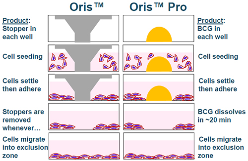 Platypus公司提供的OrisTM和OrisTMpro 產品系列,利用間隙封閉法來實現接近體內狀態的細胞遷移和侵襲。不用再穿越物理性的膜,也避免了劃痕的不均一性。