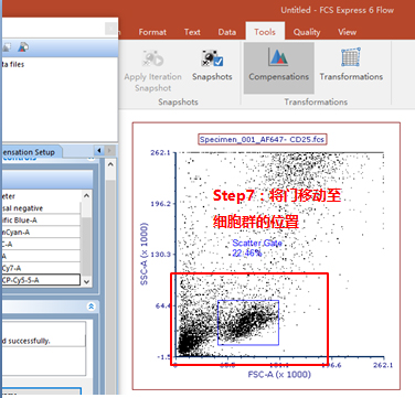 依次調(diào)整好各單管Control的Marker門(mén)的位置。此處不一一列舉。回到補(bǔ)償界面。此處的3、4適用于使用補(bǔ)償beads調(diào)節(jié)補(bǔ)償?shù)那闆r(由于本次數(shù)據(jù)為細(xì)胞,此處不詳細(xì)列出,如對(duì)此步驟感興趣,可咨詢小達(dá)君)