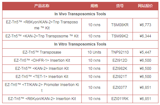 Lucigen提供的EZ-Tn5轉(zhuǎn)座酶是Tn5轉(zhuǎn)座酶的高活性突變形式,是一種高效酶,用于在體外將EZ-Tn5轉(zhuǎn)座子插入到任何目標(biāo)DNA中。