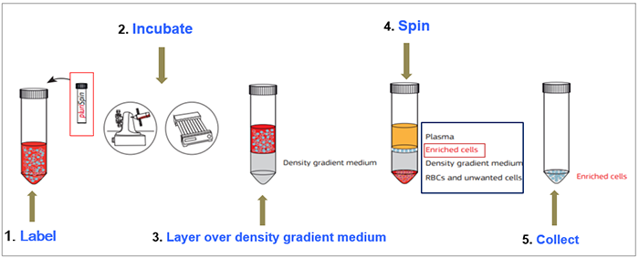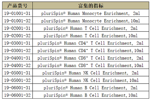 針對少量全血樣本通過淋分液分離PBMC時細胞損失太多或分離效果不好時,這里給大家分享pluriSelect另一口碑不錯用于全血樣本的富集和耗竭產品,只需要1ml全血樣本與對應指標的產品按照一定的體積比孵育,然后進行break off離心方式就可以達到對應初步的細胞富集和耗竭效果。能保證了后續要研究細胞的得率和純度,同時獲得的細胞純凈不帶磁珠。適合的樣本類型包括:PBMC, Buffy Coat, Cord Blood, Bone Marrow, Primary Cell Solution原理非常簡單實用也讓小編腦洞大開。