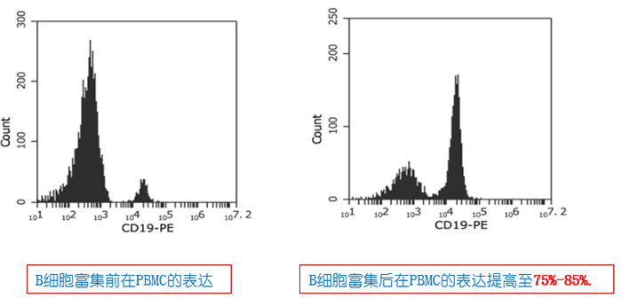 例1:pluriSpin? Human B Cell EnrichmentCat#19-06001-31),B細胞富集后在PBMC的表達提高至75%-85%.: