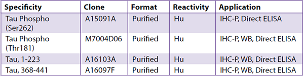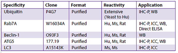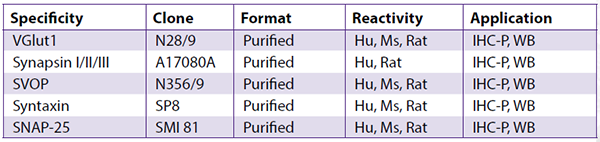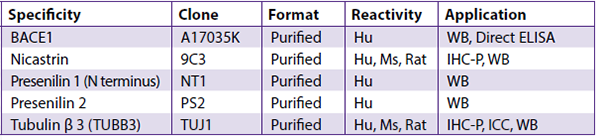 APP/Aβ抗體、β/γ分泌酶抗體、Tau抗體、α-Synuclein抗體、神經Marker抗體、神經絲L/M/H抗體、膠質細胞抗體、突觸前囊泡和突觸后抗體、GluA1/2和NMDA (GluN)受體抗體、自噬抗體、表位標簽抗體套裝。