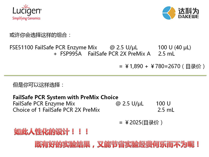 提供人性化的定制組合:一旦確定了最佳的PreMix,既可以單獨購買PCR 2X PreMix和PCR Enzyme Mix ,也可以選擇購買含有以上兩種成分的套裝。