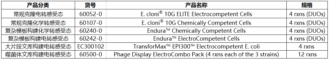 試用裝為Endura?電轉/化學轉感受態細胞,共4個反應;