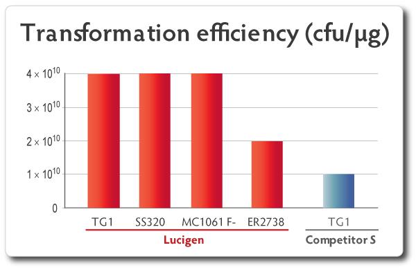 E. cloni? 10G ELITE電轉感受態轉化效率≧2×1010 cfu/μg,E. cloni? 10G化學轉感受態轉化效率≧1×109 cfu/μg;
