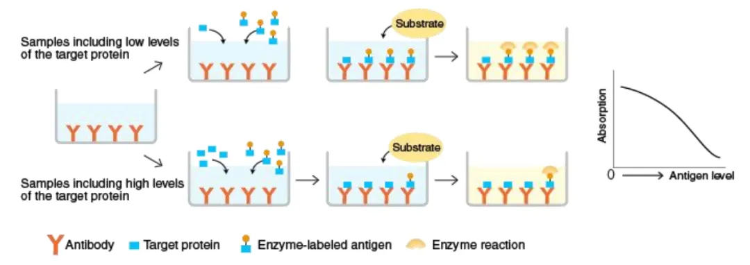 1、樣本中分析物水平較低可以使用哪些方法改進檢測?通過增加洗滌次數和兩次洗滌之間的浸泡時間降低背景。控制測定精確度。例如,在移液時要更加小心和一致,使用干凈的紙巾拍板,以避免污染。增加孵育時間。但這通常也會增加背景,因此檢測靈敏度不一定會增加。如果可以的話,建議濃縮樣本。使用5-PL曲線擬合方法,更準確地計算標準曲線下端的樣本濃度。在大多數情況下,樣本可能只含有非常低或無法檢測到的分析物水平。這時無論如何操作和測定,仍然無法檢測到準確濃度。2、包板應如何存放?如果包被完抗體的板不能立即使用,應將其密封并在4°C儲存過夜。3、為什么使用同一克隆號的捕獲抗體和檢測抗體建立ELISA實驗沒有成功?如果使用相同的克隆抗體進行檢測和捕獲,則抗原表位可能已經被其中一種抗體占據并抑制另一抗體結合。建議捕獲和檢測抗體選擇不同的克隆號。4、應該使用哪種包被緩沖液?一般來說,建議使用PBS(pH 7.4)或碳酸鹽緩沖液(pH 9.5)。確切的包被緩沖液可能取決于要檢測的細胞因子。5、為什么細胞因子流式染色與ELISA測定之間沒有良好的相關性?流式細胞術檢測的胞內細胞因子代表檢測時的陽性細胞比例,ELISA代表細胞因子隨時間的積累量??赡苌倭康年栃约毎谝欢螘r間之后會分泌大量的細胞因子于培養上清中,導致ELISA的結果與胞內因子染色的結果不一致6、可以使用細胞培養板進行ELISA實驗嗎?不可以。細胞培養板設計用于達到細胞培養目的,通常不具有高蛋白結合能力。對于ELISA,建議使用具有高蛋白結合能力的板,例如 Nunc Maxisorp?酶標板。7、血清等樣本可以重復使用嗎?不建議重復使用樣本。為了獲得準確的結果,樣本應分裝儲存,僅供一次性使用。如果重復使用樣本,需要進行額外的驗證實驗,以確保實驗準確性。8、在什么步驟中,可以暫停ELISA實驗?可以冷凍板子以備后用嗎?最好遵循說明書操作,沒有任何可以暫停實驗的步驟。但是,如果一定需要暫停實驗,建議在封閉步驟(包被捕獲抗體后)??梢栽诳字屑尤?00 μL封閉緩沖液,并將板在4°C過夜(信號損失最小或沒有)或在-20°C冷凍幾天(可能會對信號產生一些影響)。不建議在第一步進行(在4°C用捕獲抗體包被超過16-20小時),因為可能會導致高背景。9、包被捕獲抗體可以超過過夜的時間嗎?通常來說,建議在4°C包被16-20小時。較長的孵育時間可能會增加與板結合的捕獲抗體量,會增加背景。10、培養基中的酚紅會干擾ELISA測定嗎?不會,培養基中酚紅的吸光度可以在計算時,通過扣除空白孔中本底的吸光度而消去,因此不會干擾ELISA測定的讀數。11、對于一些ELISA試劑盒,為什么血清樣本需要稀釋?血清樣本稀釋可以盡量減少樣本和標準品之間的基質差異,以獲得更加準確的結果。12、如何提高ELISA檢測獲得更好的信號和靈敏度?增加孵育時間,但這也可能會增加檢測的背景,同時不改變靈敏度。在孵育步驟中搖動板子。確保標準品在使用前完全溶解。在兩次洗滌之間增加浸泡時間,以進一步降低背景。如果可以的話,在450-570 nm處讀板以減去本底。通過控制移液誤差或使用更大體積的洗滌緩沖液洗滌來改善CV值。使用5-PL或4-PL曲線擬合方法,而不是線性曲線擬合。